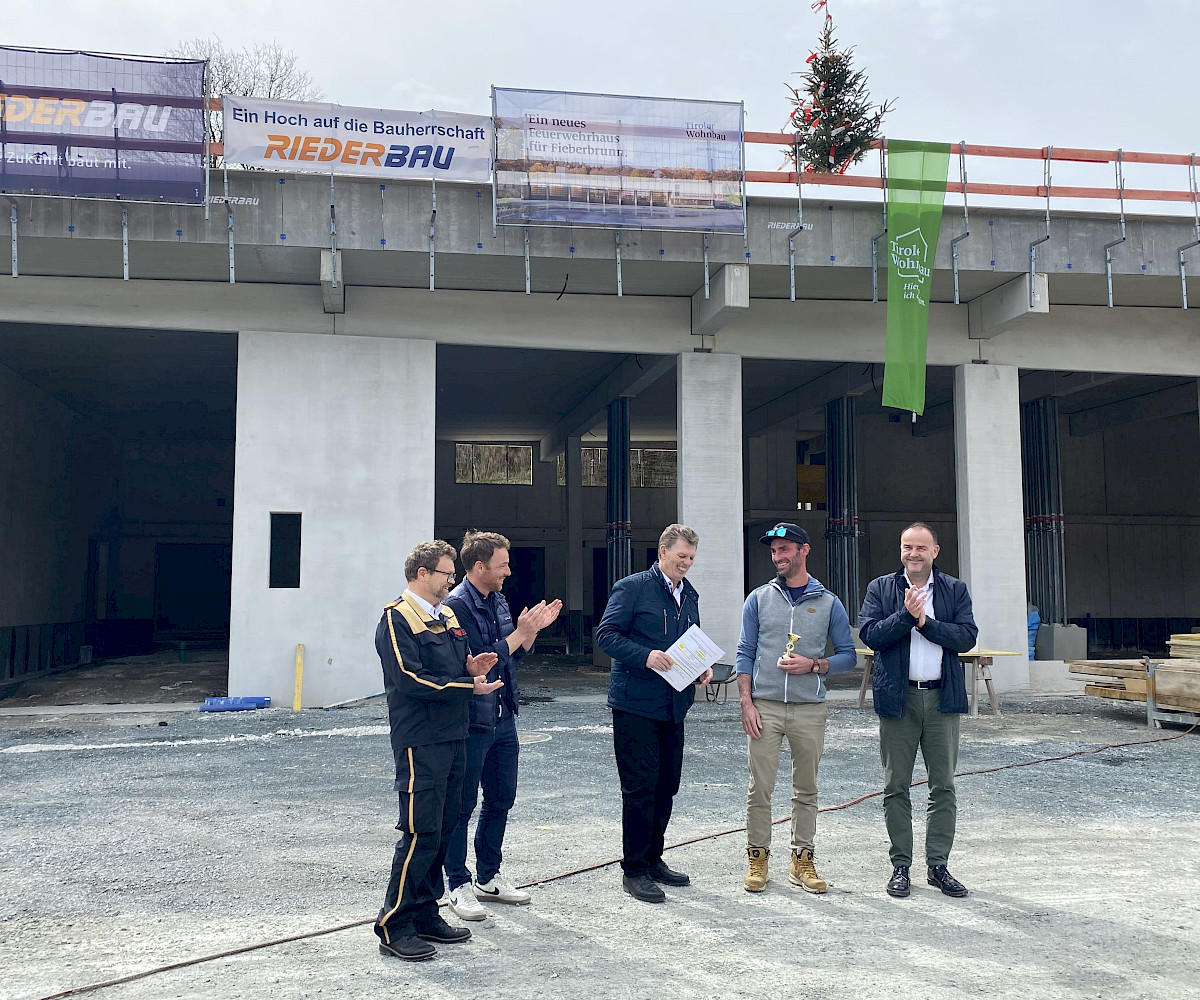 Gemeinsam mit den ausführenden Firmen sowie allen am Bau Beteiligten wurde dieser wichtige Fortschritt gewürdigt. Unser besonderer Dank gilt der Firma Riederbau für die professionelle Umsetzung sowie dem Bauträger Tiroler Wohnbau für die Projektentwicklung und Begleitung.