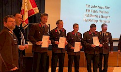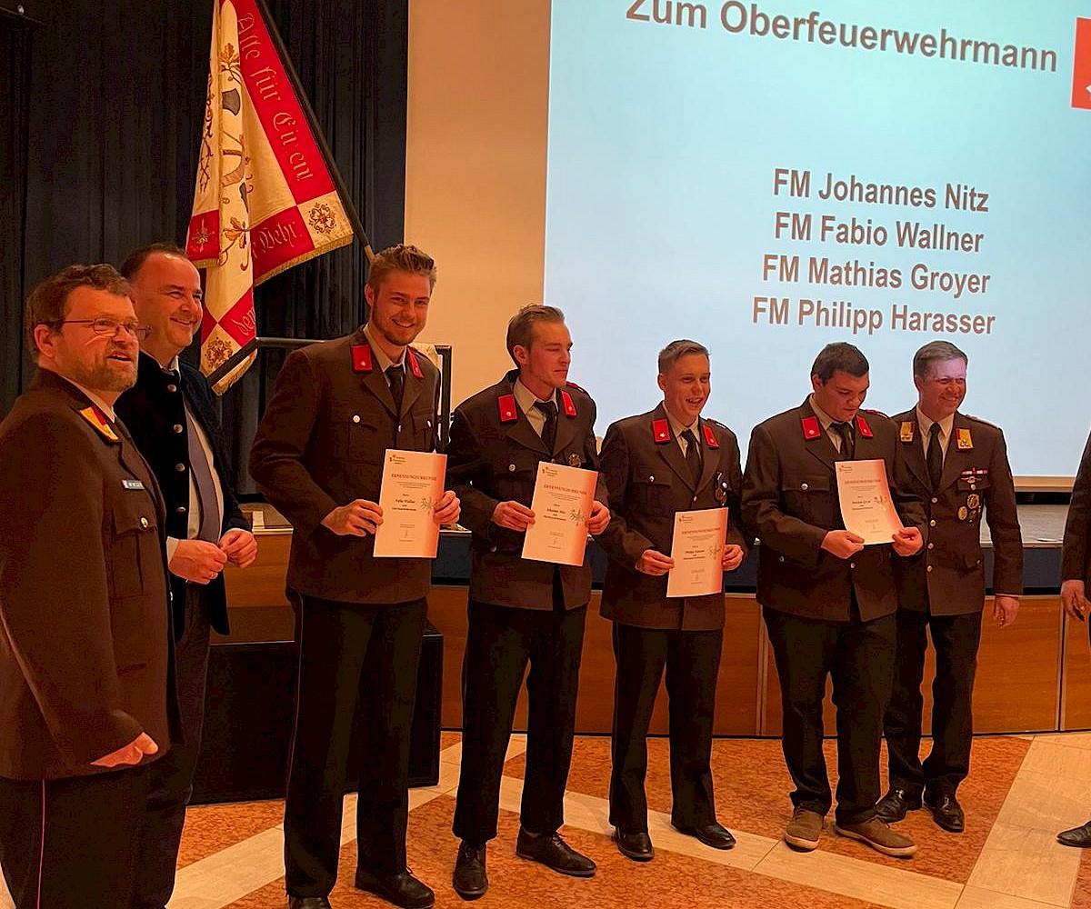 zum Oberfeuerwehrmann: Johannes Nitz, Fabio Wallner, Matthias Groyer und Philipp Harasser