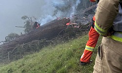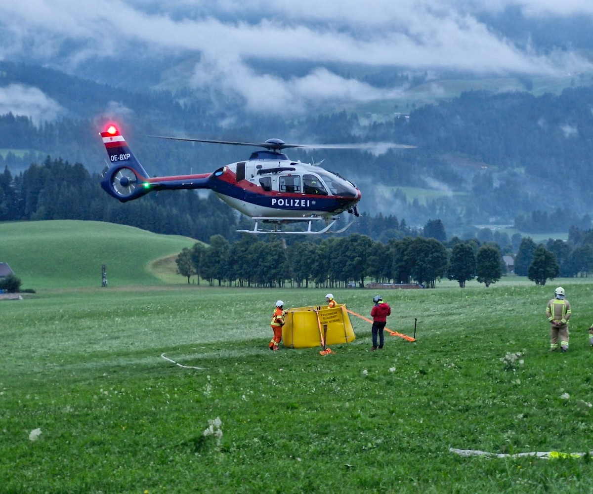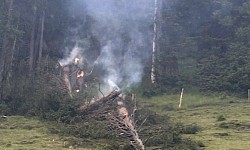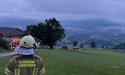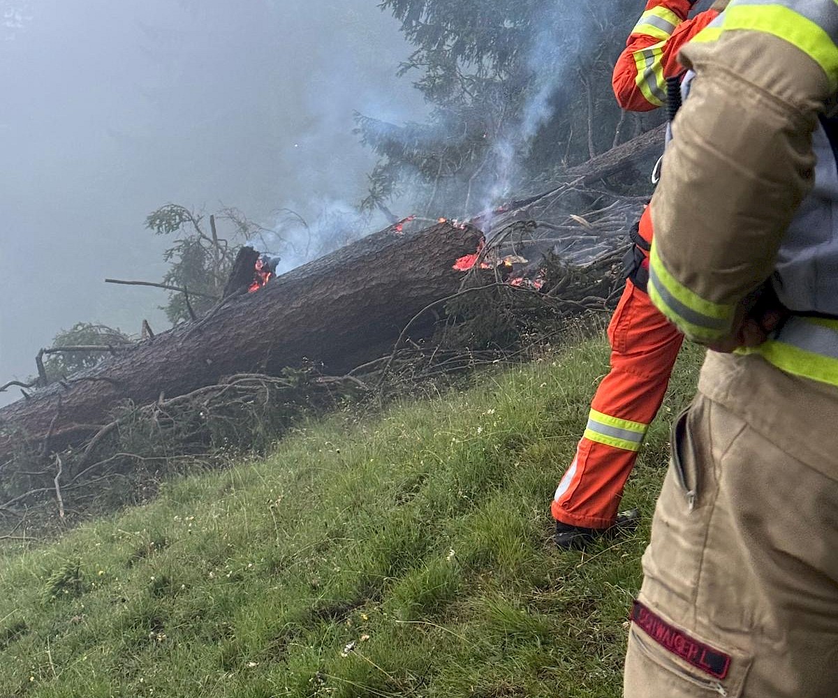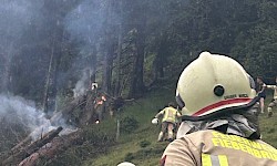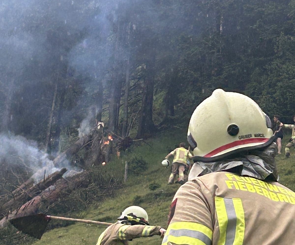 Parallel dazu wurden die Libelle Tirol sowie die Flughelfer des Bezirks Kitzbühel nachalarmiert, um die Brandbekämpfung aus der Luft zu unterstützen. Ein Erkundungsflug ergab, dass vermutlich ein Blitzschlag drei Bäume entzündet hatte.