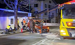 In den frühen Morgenstunden des 16.02.2025 wurde die Feuerwehr Fieberbrunn auf Anforderung der Polizei zu Aufräumarbeiten bei der Dorfeinfahrt alarmiert. Nachdem ein Lenker mit seinem PKW, welcher Richtung St.Johann unterwegs war, einen Baum touchierte, wurde das Fahrzeug auf die andere Straßenseite geschleudert, wo es anschließend stark beschädigt zum Stillstand kam. Unsere Aufgabe bestand darin, die Unfallstelle zu säubern, das austretende Öl zu binden und den Abschleppdienst zu unterstützen. Verletzt wurde glücklicherweise niemand.