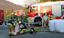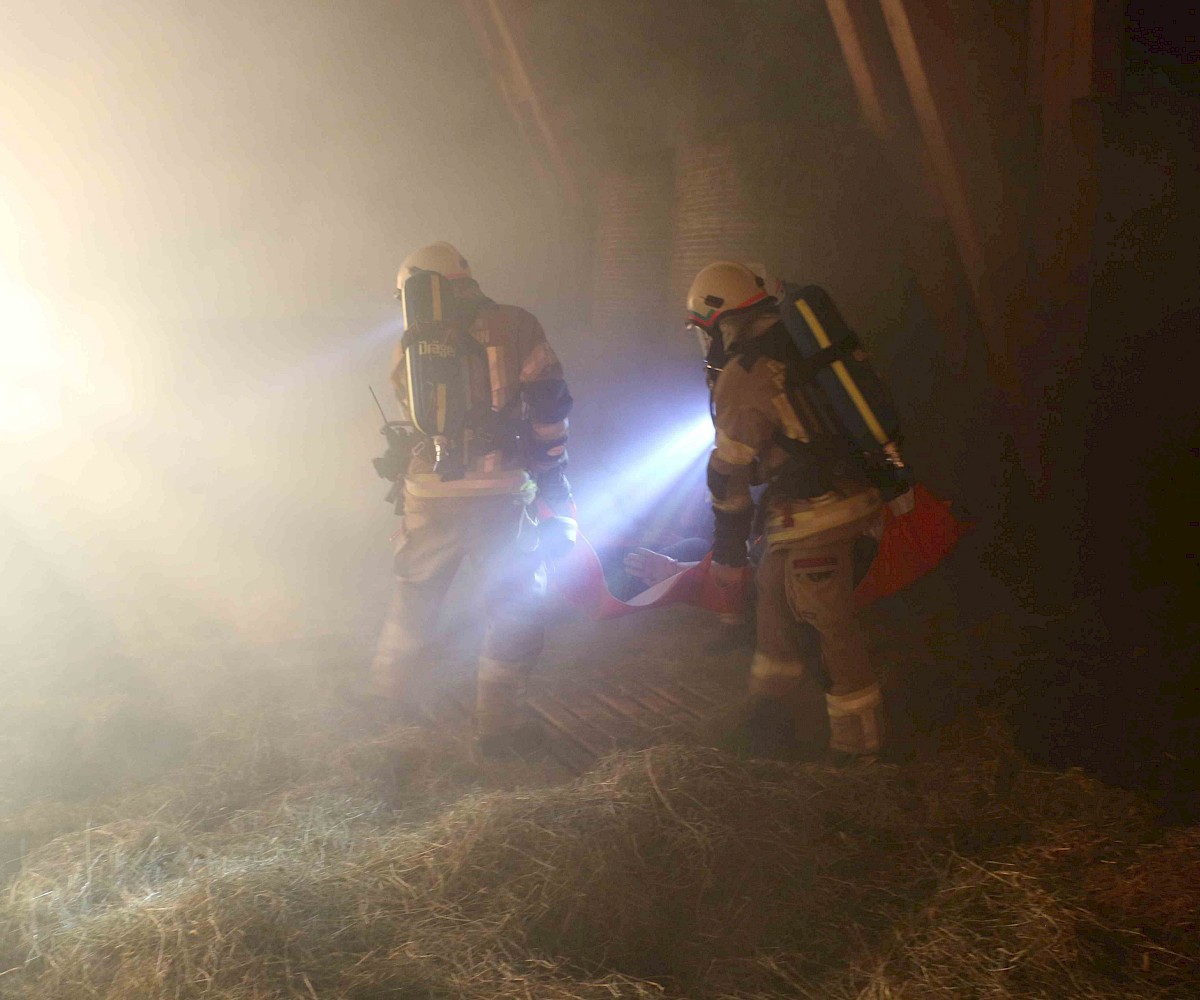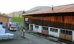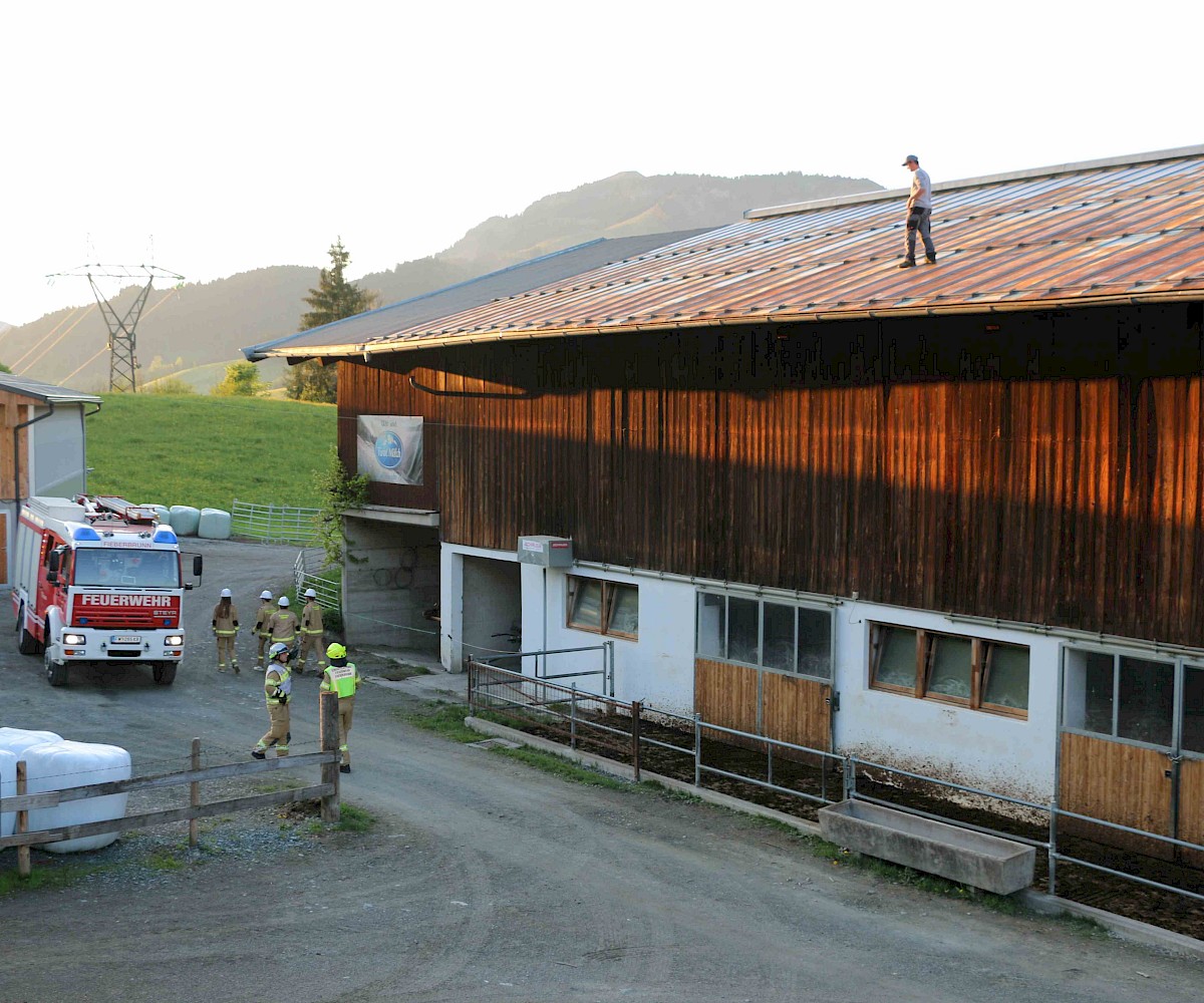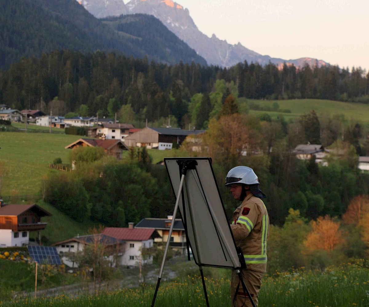 Am 29.04.2025 fand die alljährliche Florianiübung der Freiwilligen Feuerwehr Fieberbrunn statt. Übungsannahme war ein Scheunenbrand, verursacht durch Flämmarbeiten, bei dem sich ein Arbeiter auf dem Dach befand und eine weitere Person im Inneren der stark verrauchten Scheune eingeschlossen war.