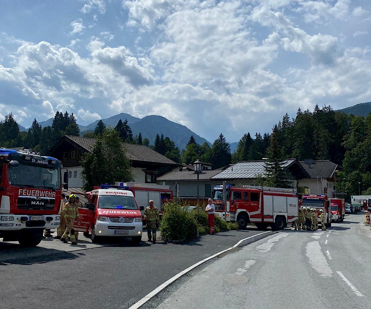 Am 07.08.2024 wurden wir zu einem Gasaustritt alarmiert. Bei Grabungsarbeiten wurde eine Gasleitung beschädigt. Unsere Aufgabe bestand darin, die Umgebung rund um das austretende Erdgas abzusichern, sowie die Absperrung der Straße. Die Feuerwehr St. Johann in Tirol, die Feuerwehr Kitzbühel sowie die Tigas wurden mitalarmiert. Mit dem Gas-Messgerät der Feuerwehr St. Johann konnten wir die Konzentration des Gases messen. Auch die Feuerwehr Kitzbühel, die mit dem Gefahrenzug kam, hat die Gaskonzentration gemessen.