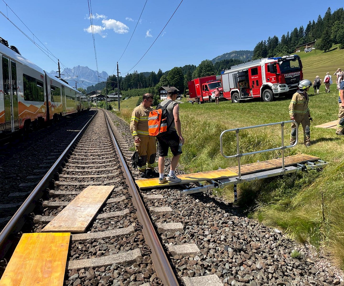 Ein Zug mit rund 25 Fahrgästen kam am 25.06 kurz vor dem Bahnhof Fieberbrunn aufgrund eines technischen Defekts zum Stillstand. Aufgrund der extremen Hitze und der ausgefallenen Klimaanlage, wurde die Feuerwehr Fieberbrunn zur Unterstützung der Evakuierung herangezogen. Nach Eintreffen des ÖBB-Einsatzleiters und der Bestätigung, dass die Strecke gesperrt und die Oberleitung stromlos war, konnte die Evakuierung beginnen.